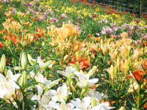 ここも冬はスキー場なんですが、そこを利用して夏はゆり園にしてあるんです。