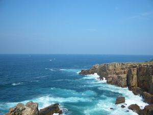 これも割りと近い千畳敷は砂岩が波に侵食されて出来た岩のスロープですが、真っ青な海とのコントラストが絶妙。