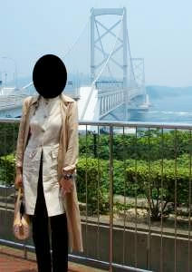 しかたがないので、写真一枚撮って(バック瀬戸大橋です・笑。橋の上走るのレーシングゲームみたいで面白かった♪・・・白はやっぱり太って見えるかも。)渦潮見てたまねぎせんべい買って帰ってきました。